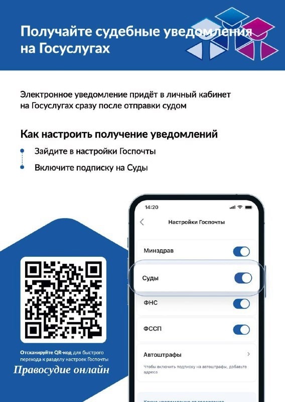 6.Подключить судебные уведомления на портале Госуслуг вы можете по ссылке